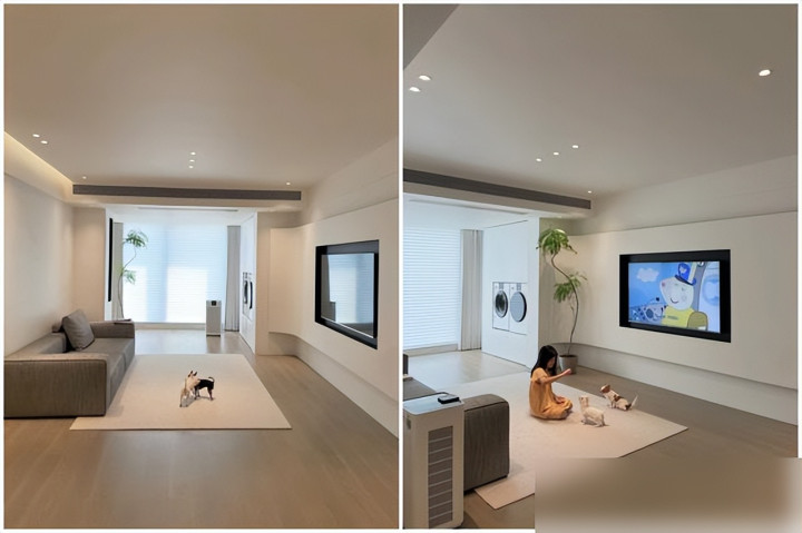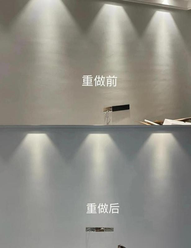 射灯孔提前开好,灯光一打墙面平整度无处遁形。