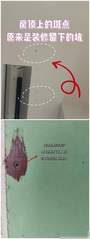 吊顶钉眼更要盯死,锈水渗出来毁统统,涂防锈漆等于给钉子穿雨衣。