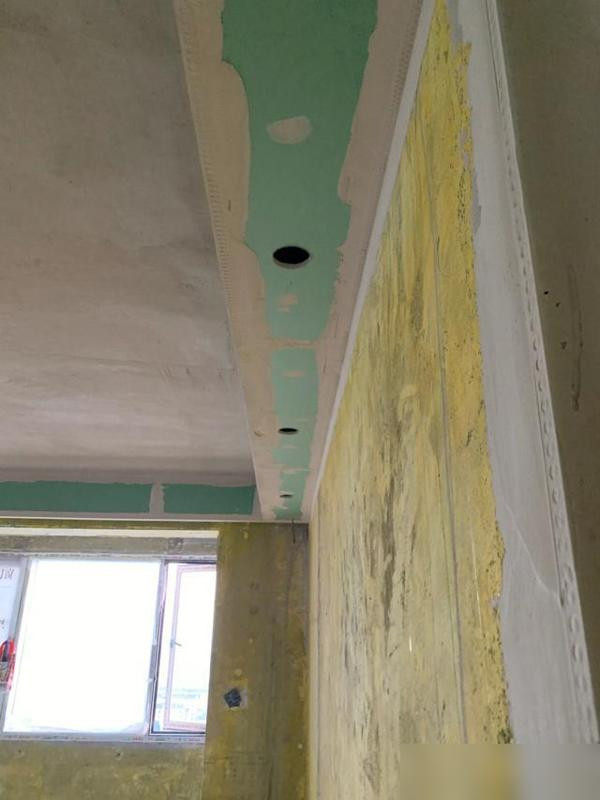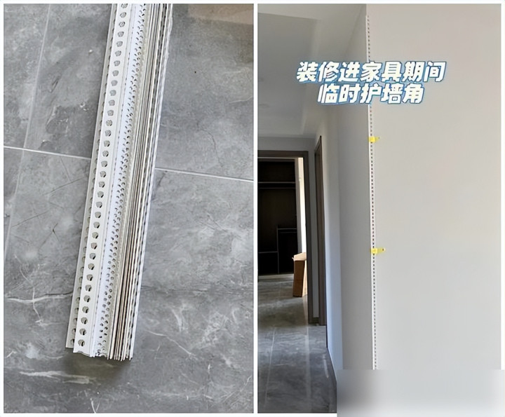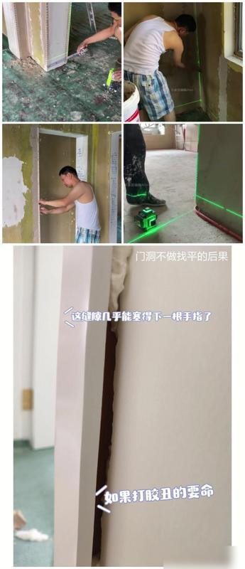阴阳角找直也别暗昧,激光水平仪打线贴角条,后期装门套才严丝合缝。
